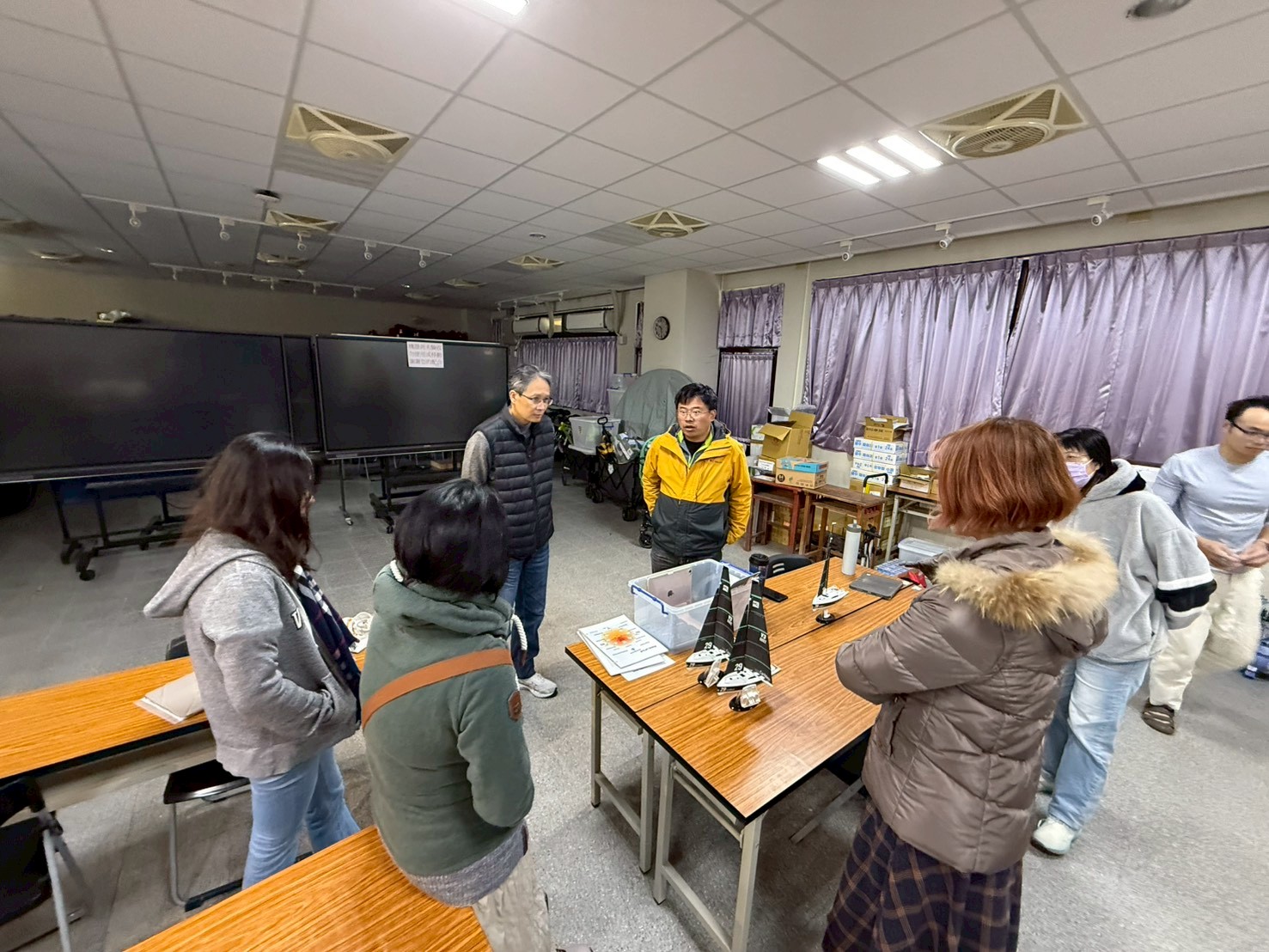 講座主題 研討內容 | 一、 課程開發緣由為配合學校發展「航船航海」特色戶外課程,並結合自然科學領域(物理力學、流體力學)之應用,本次共備旨在培訓教師掌握帆船操作原理,作為未來引導學生跨領域學習的基礎。 二、 核心課程內容(摘要) 1. 帆的操作與升力來源物理原理: 學習帆面如何透過伯努利定律(Bernoulli's principle)產生升力。當風吹過帆的弧面時,兩側流速差產生的壓力差即為推動船隻前進的主要力量。 調整機制: 了解帆面角度與風向的相對關係,如何透過調整帆的張力來獲取最大動能。 2. 實作體驗: 模型操作實踐場域: 移師至校內水池進行模型帆船實測。 操作重點:帆的收放: 觀察帆面「放鬆」與「收緊」時,船隻在水面上的受力變化與航行速度差異。 舵與帆的協作: 練習控制船身方向與帆面角度的配合。 3. 逆風航行與 Z 字形策略逆風原理: 探討帆船如何利用「升力」而非單靠風的「推力」,實現與風向夾角的前進。 Z 字形航法(Tacking): 透過實作理解為何無法直接迎風行駛,必須藉由不斷切換航向(Z 字形走法)來克服風阻,達到向逆風處推進的目的。 三、 教師心得與後續建議教學轉化: 團員普遍認為模型實作能有效將抽象的「升力」具象化,極具教學價值。 器材規劃: 建議未來正式課程可添購更多比例一致的模型船,供學生小組競賽或實驗。 安全評估: 針對水池旁教學的安全性及器材維護,需納入課程教案的規範中。 | |