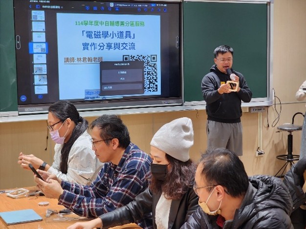 透過五校分享數位、雙語及模組化教學,有效促進策略交流 ;結合林君翰講師的電磁學實作,將抽象概念具象化並強化動手做能力 。本次活動落實資源共享與跨校社群互助,現場互動熱絡,成功達成理論與實務並重的增能目標 。 | ||