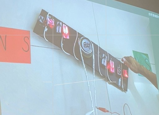 2.培英國中:實作—電磁學教學(因材網使用分享) (1)困難:傳統的馬達實品太快,無法讓尚未建立觀念的學生清楚了解 (2)更新:自製教具將電流「可視覺化」方便說明,